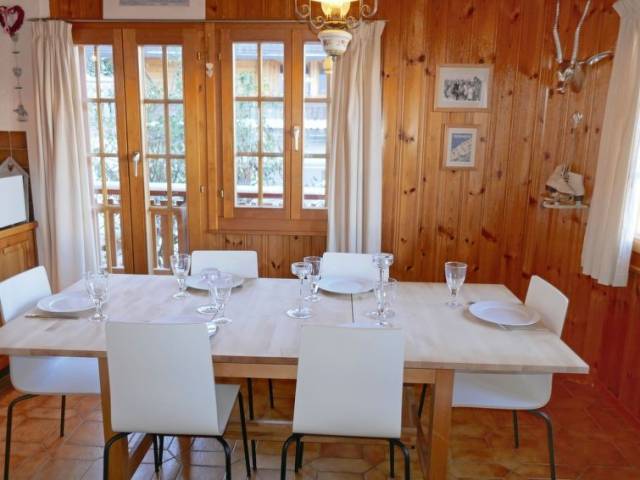 "Les Muguets", chalet de madera 4 estancias 110 m2 en 2 plantas. Con mobiliario confortable: salón-comedor con TV cable, CD y DVD. Salida al balcón. Cocina abierta (4 fogones, horno, lavavajillas, 4 placas de vitrocerámica, tostadora, hervidor de agua eléctrico, microondas, cafetera eléctrica, Cápsulas de café (Nespresso) extra, horno Raclette, set de Fondue (chinoise, queso)). WC separado. Calefacción gasóleo. En planta inferior: 1 dorm. con 1 cama de matrimonio (160 cm, 200 cm de longitud). Salida al jardín, orientación norte. 1 dorm. con 2 camas. Salida al jardín, orientación norte. 1 dorm., pequeño con 2 camas. Baño/WC. Balcón 10 m2, orientación norte y orientación oeste, terraza-jardín, orientación sur, césped 15 m2. Muebles de terraza, barbacoa. Vista a las montañas y al valle. El alojamiento dispone de: lavadora, trona, cuna. Internet (Wifi, gratis). Garaje, altura 200 cm, ancho 240 cm. A tener en cuenta: apartamento para no fumadores, aparcamiento para coches pequeños.