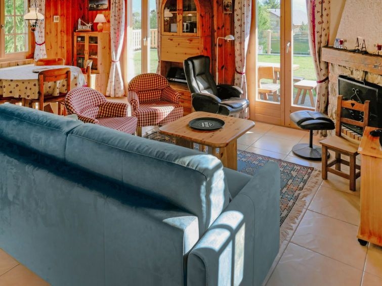 "Mirabeau", chalet de madera 4 estancias 83 m2 en 2 plantas, orientación este. Parcialmente abuhardillado, con mobiliario confortable y bonito: entrada. Salón-comedor con chimenea, TV cable, equipo de música y DVD. Salida al jardín, a la terraza. Cocina abierta (horno, lavavajillas, 4 placas de vitrocerámica, tostadora, hervidor de agua eléctrico, microondas, cafetera eléctrica, Cápsulas de café (Nespresso) extra, horno Raclette, set de Fondue (queso)). Salida al balcón acristalado. WC separado. Calefacción eléctrica. Planta superior: 1 dorm. con 1 cama doble (2 x 80 cm, 200 cm de longitud). Salida al balcón, orientación este. 1 dorm. para niños, pequeño con 1 x 2 literas (80 cm, 190 cm de longitud). 1 dorm. con 2 camas (90 cm, 200 cm de longitud). Salida al balcón, orientación este. Ducha/WC. Balcón, orientación este, terraza, orientación este. Muebles de terraza, barbacoa (portátil), tumbonas. Vista muy bonita a las montañas y al valle. El alojamiento dispone de: lavadora, trona, cuna, secador de pelo. Internet (Wifi, gratis). Plaza de aparcamiento. A tener en cuenta: apartamento para no fumadores. 1 mascota / perro.
