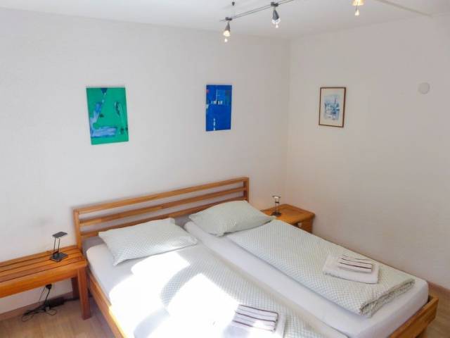 Apartamento de 3 estancias 75 m2 en el 4° piso. Salón-comedor con 1 sofá-cama (140 cm, 190 cm de longitud), TV cable, radio, CD y DVD. 1 dorm. para niños con 1 cama (90 cm, 190 cm de longitud), 1 x 2 literas (90 cm, 190 cm de longitud), TV cable y pantalla plana. 1 dorm. con 1 cama doble (2 x 90 cm, 200 cm de longitud). Rincón-cocina (4 fogones, horno, lavavajillas, tostadora, hervidor de agua eléctrico, cafetera eléctrica, set de Fondue (chinoise, queso)). Baño/WC, ducha/WC. Terraza 10 m2, orientación oeste. Muebles de terraza, trastero. Vista a las montañas y al bosque. El alojamiento dispone de: trona, secador de pelo. Internet (Wifi, gratis). Garaje n. 76, altura 200 cm, ancho 230 cm. A tener en cuenta: apartamento para no fumadores.