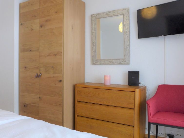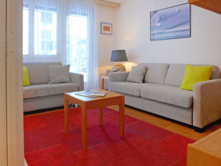 Apartamento de 2 estancias 51 m2, en planta superior. Reformado en 2019, con mobiliario bonito y agradable: salón-comedor con 1 sofá-cama doble (145 cm, 200 cm de longitud), TV cable y radio. Salida a la terraza, orientación sur y orientación oeste. 1 dorm. con 1 cama doble (2 x 90 cm, 200 cm de longitud), TV. Salida al balcón, orientación sur y orientación oeste. Cocina abierta (horno, lavavajillas, 4 placas de vitrocerámica, tostadora, hervidor de agua eléctrico, microondas, congelador, cafetera eléctrica, horno Raclette, set de Fondue (chinoise, queso)). Baño/WC. Balcón 9 m2, orientación sur y orientación oeste, terraza grande 29 m2, orientación sur y orientación oeste. Muebles de terraza. Vista bonita Matterhorn. El alojamiento dispone de: secador de pelo. Internet (Wifi). A tener en cuenta: apartamento para no fumadores. Permitido máximo 1 mascota / perro.