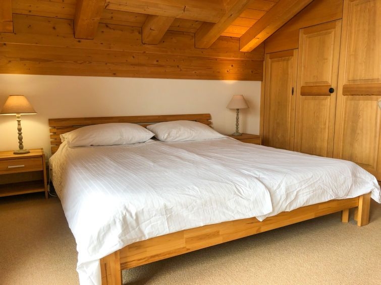 Apartamento de 4 estancias 119 m2 en el 1° piso, orientación sur. Con mobiliario confortable y agradable: salón-comedor con chiminea nórdica y TV digital. Salida al balcón, orientación sur y orientación oeste. 1 dorm. con 1 cama doble (2 x 90 cm, 200 cm de longitud). Salida al balcón, orientación oeste. Cocina abierta (lavavajillas, 4 placas de vitrocerámica, tostadora, hervidor de agua eléctrico, microondas, cafetera eléctrica, Cápsulas de café (Nespresso) extra, horno Raclette, set de Fondue (queso)). Ducha/WC. Planta superior: 1 dorm. con 1 cama doble (2 x 90 cm, 200 cm de longitud), baño/WC. Salida al balcón, orientación sur. 1 dorm. con 2 camas (90 cm, 200 cm de longitud), ducha/WC. Suelo de parquet, moqueta. Vista panorámica espléndida a las montañas y Eiger. El alojamiento dispone de: plancha, cuna hasta 3 años, leña (extra). Internet (Wifi, gratis). Plaza de aparcamiento (1 coche), garaje n. 15. A tener en cuenta: apartamento para no fumadores. Entrada privada, extintores.