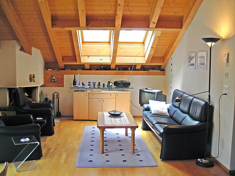 Apartamento de 3 estancias 83 m2, en el ático, orientación sur. Con mobiliario bonito y agradable: salón-comedor abuhardillado con chimenea (sólo con función decorativa), TV cable (pantalla plana), radio y CD. Salida a la terraza, orientación sur. 2 dorm., abuhardillados, cada habitación con 2 camas (90 cm, 200 cm de longitud). Cocina (horno, lavavajillas, 4 placas de vitrocerámica, microondas, cafetera eléctrica, horno Raclette, set de Fondue (queso)). Baño/ducha/WC. Calefacción por el suelo. Suelo de parquet. Terraza 15 m2, orientación sur y orientación este. Muebles de balcón. Vista espléndida a las montañas. El alojamiento dispone de: lavadora, secadora. Internet (Wifi, gratis). Garaje n. 2. A tener en cuenta: apartamento para no fumadores. Extintores.