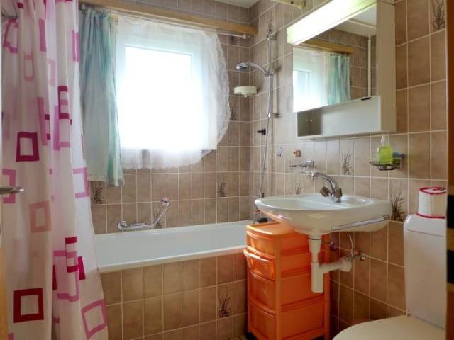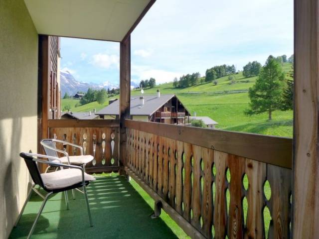 "Saskia", apartamento de 3 estancias 76 m2, en planta baja elevada. Con mobiliario rústico y agradable: salón-comedor abierto con rincón-comedor y TV satélite (pantalla plana), radio y DVD. Salida al balcón. 1 dorm. con 1 cama doble (2 x 90 cm, 200 cm de longitud). 1 dorm. con 2 camas. Cocina abierta (horno, 4 placas de vitrocerámica, tostadora, hervidor de agua eléctrico, cafetera eléctrica, Cápsulas de café (Nespresso) extra, horno Raclette, set de Fondue (queso)). Baño/WC, WC separado. Balcón 20 m2. Muebles de balcón, tumbonas. Vista bonita a las montañas, al valle y al paisaje. El alojamiento dispone de: secador de pelo. Internet (Wifi, gratis). Garaje n. B2. A tener en cuenta: adecuado para familias. Apartamento para no fumadores. 1 mascota / perro.