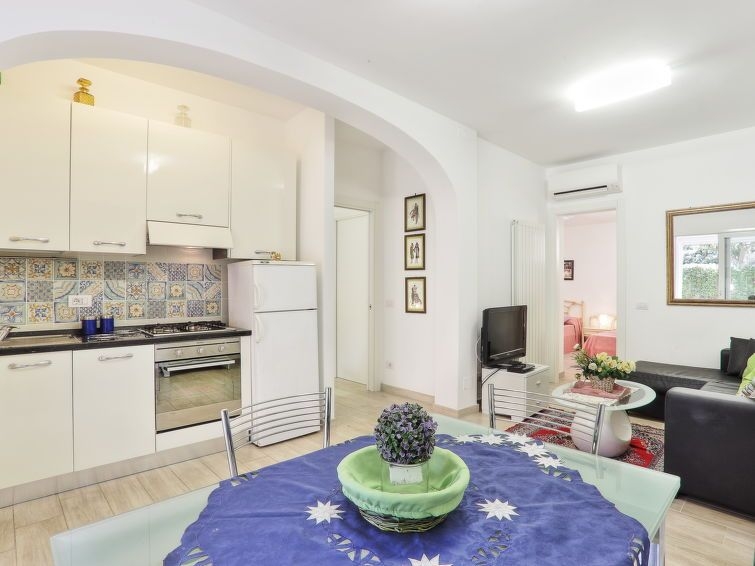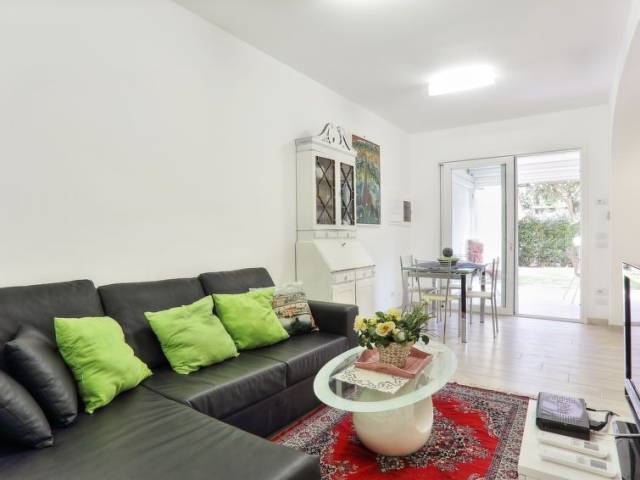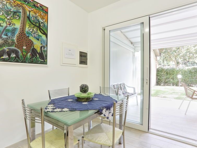Casa pareada 3 estancias 55 m2, en la planta baja. Reformada, con mobiliario bonito: salón-comedor con balcón acristalado con 1 sofá-cama doble, TV y DVD. Salida al jardín, al balcón acristalado. 1 dorm. doble con ducha/bidet/WC. Salida al balcón acristalado. 1 dorm. con 2 camas y ducha/bidet/WC. Rincón-cocina (horno, lavavajillas, hervidor de agua eléctrico, microondas) con mesa de comedor. Aire acondicionado. Jardín 40 m2, césped, cenador 20 m2. Muebles de terraza, rincón para sentarse. El alojamiento dispone de: lavadora, secadora, plancha, mosquitera, secador de pelo. Internet (Wifi, gratis). Plaza de aparcamiento (1 coche) junto a la casa. A tener en cuenta: adecuado para familias. Casa para no fumadores. 1 mascota / perro.
