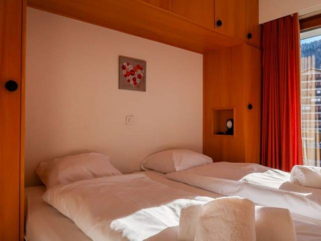 "Christiania 2 C8", apartamento de 2 estancias 45 m2 en el 8° piso. Vivienda adecuada para 2 adultos + 2 niños. Con mobiliario funcional: entrada con 1 x 2 literas (80 cm, 190 cm de longitud). Salón-comedor con chimenea (sólo con función decorativa), TV cable, radio y CD. Salida al balcón. 1 dorm. con 2 camas (90 cm, 190 cm de longitud). Salida al balcón. Cocina (4 fogones, horno, set de Fondue (queso)). Baño/WC, WC separado. Balcón, orientación sur. Vista a la pista de esquí y a la localidad. El alojamiento dispone de: Internet (Wifi, gratis). A tener en cuenta: apartamento para no fumadores, sin aparcamiento. Permitido máximo 1 mascota / perro.