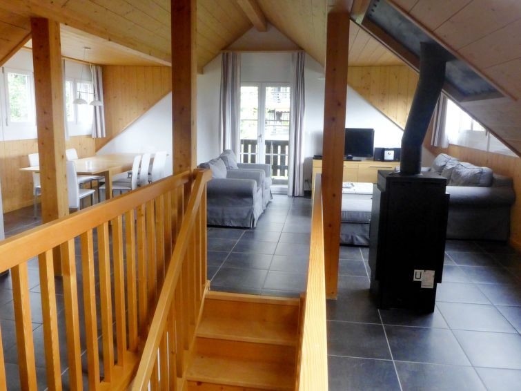 "Andromède 5-pièces 12", apartamento de 5 estancias 163 m2 en 2 plantas, en planta superior. Con mobiliario confortable y agradable: 2 dorm., cada habitación con 1 cama doble. Salida al balcón. 1 dorm. con 1 cama doble. 1 dorm. con 1 cama-nido (2 pers.). Baño/WC, ducha/WC. Buhardilla: salón-comedor abuhardillado con chiminea nórdica, TV cable y equipo de música. Salida al balcón. Cocina abierta (horno, lavavajillas, 4 placas de vitrocerámica, microondas, cafetera eléctrica, set de Fondue (queso)). 2 balcones 13 m2. Muebles de terraza. Vista muy bonita a las montañas y al paisaje. El alojamiento dispone de: secador de pelo. Internet (Wifi, gratis). A tener en cuenta: apartamento para no fumadores. Permitido máximo 2 mascotas / perros.