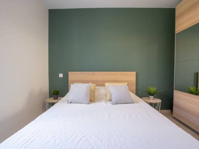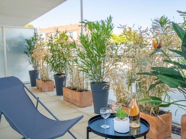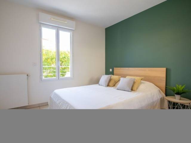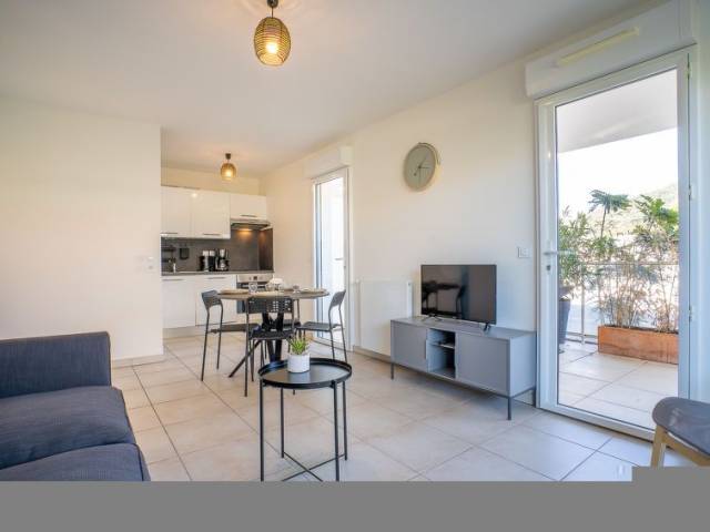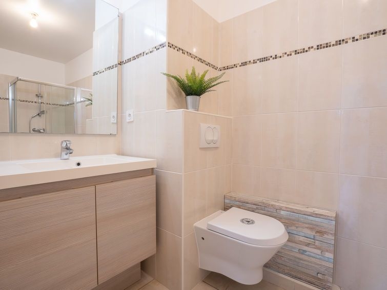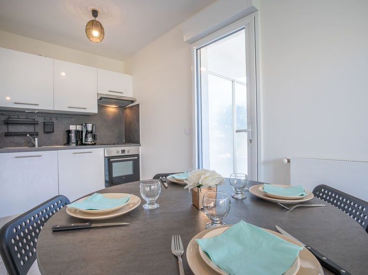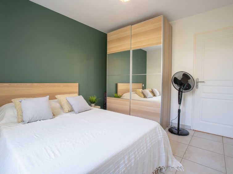 Apartamento de 2 estancias 41 m2, en la planta baja. Con mobiliario bonito y de estilo: salón-comedor con ventanal con 1 sofá-cama doble (140 cm, 190 cm de longitud), TV (pantalla plana), ventilador. Salida a la terraza. 1 dorm. con 1 cama de matrimonio (140 cm, 190 cm de longitud). Cocina abierta (horno, lavavajillas, 2 placas de vitrocerámica, tostadora, hervidor de agua eléctrico, microondas, congelador, cafetera eléctrica). Ducha/WC. Calefacción eléctrica. Terraza 15 m2. Muebles de terraza. El alojamiento dispone de: lavadora, cuna, secador de pelo. Internet (Wifi, extra). Plaza de aparcamiento n. 354/Sous-sol. A tener en cuenta: TV solamente FR. Detector de humo. Oferta de un particular según el art. 155, IV del CGI.