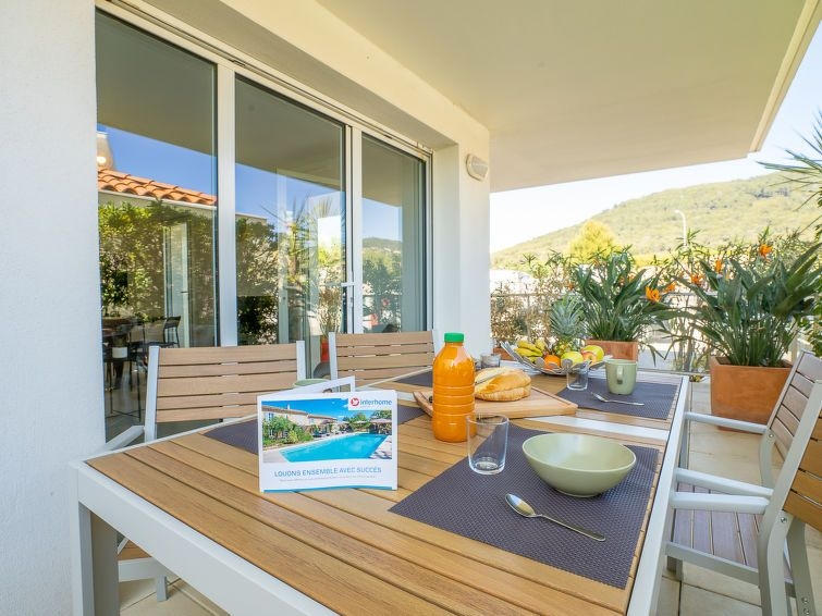 Carqueiranne: Casa de apartamentos "Royal Rivage". En la localidad, a 1 km del centro de Carquieranne, lugar tranquilo, a 200 m del mar. Comunitario: jardín 5'000 m2 (vallado), piscina vallada (10 x 5 m, Disponible por temporada: 01.May. - 31.Oct. horario piscina: 09:00-20:00). En el inmueble: ascensor. Aparcamiento (número limitado), posibilidad de aparcamiento 220 m. Tienda de comestibles, restaurante 500 m, parada de autobús 300 m, playa de arena 200 m. La entrega de llaves se realiza por la agencia INTERHOME en Hyères sur le port.