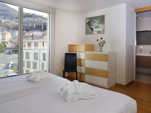 Residencia "Le National Montreux", moderna. En la localidad, en el corazón de la ciudad. Comunitario: piscina climatizada (3 x 10 m, 160 - 160 cm de profundidad, Disponible por temporada: 01.Ene. - 31.Dic. horario piscina: 07:00-22:00). Ducha/WC en zona de piscina. En el inmueble: sauna, gimnasio, bañera de hidromasaje, habitación relax hammam, ascensor, calefacción central. Cambio de sábanas 1 vez por semana (suplemento extra). Cambio de toallas 1 vez por semana (suplemento extra). Posibilidad de limpieza 1 vez por semana (extra). Garaje comunitario. Dimensiones: altura 195 cm. Supermercado 400 m, centro comercial 350 m, restaurante 300 m, café 350 m, parada de autobús "Bon Port" 130 m, estación de tren "Montreux", ferry 700 m, piscina 5 km, lago Lac Léman 50 m. Campo de golf (18 hoyos) 15 km, tenis 950 m, minigolf 1.1 km. Atracciones en los alrededores: Château de Chillon 2.4 km, Montreux Jazz Festival 1.4 km, Musée Olympique Lausanne 27 km, Swissvapeur Parc / Aquaparc Bouveret 16 km, Chaplin's World Vevey 9.3 km. Zonas de esquí populares fácilmente accesibles: Leysin, Villars, Portes-du-Soleil. Lagos conocidos fácilmente accesibles: Lac Léman. Zona de senderismo Rochers de Naye. A tener en cuenta: residencia con vigilancia. Residencia con puertas de cierre eléctrico. Calle principal en la proximidad. Vecindario muy sensible a ruidos. Se ruega respetar la tranquilidad y normas de buen comportamiento.