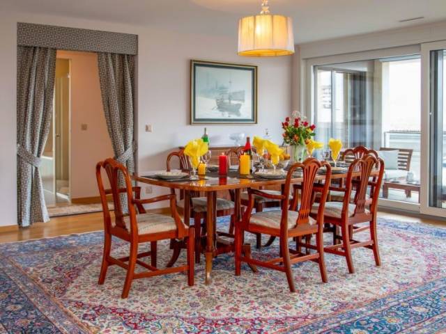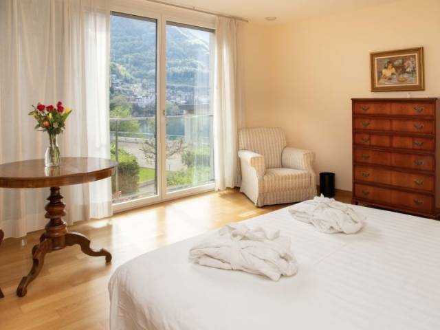 "L'Esplanade A1.4", apartamento de 5 estancias 214 m2 en el 1° piso. Con mobiliario lujoso y de buen gusto: salón-comedor con TV satélite, calefacción de gas, aire acondicionado y persianas eléctricas. Salida a la terraza. 1 dorm., grande con 1 cama doble (180 cm, 200 cm de longitud), baño/ducha/WC y aire acondicionado. 1 dorm., grande con 2 camas (90 cm, 200 cm de longitud), baño/ducha/WC y aire acondicionado. 1 dorm. con 2 camas (90 cm, 200 cm de longitud), aire acondicionado. 1 dorm. con 1 cama (90 cm, 200 cm de longitud). Oficina. Cocina abierta (horno, lavavajillas, 4 Placas de inducción, tostadora, hervidor de agua eléctrico, microondas, congelador, cafetera eléctrica). Ducha/WC, baño/ducha/WC. Terraza 18 m2. Muebles de terraza. Vista espléndida al lago, a las montañas, al paisaje y a la localidad. El alojamiento dispone de: lavadora, secadora, plancha, secador de pelo. Internet (Wifi, gratis). Garaje n. 85. A tener en cuenta: apartamento para no fumadores.