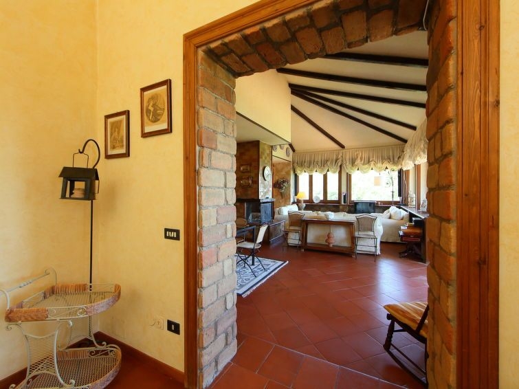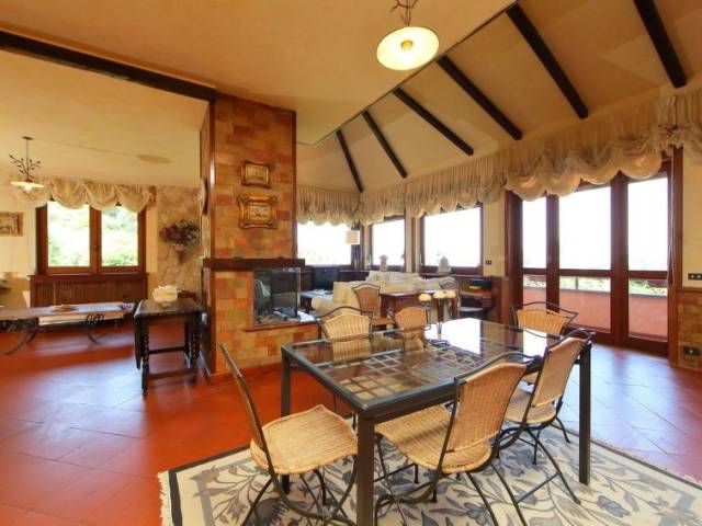 Villa 8 estancias 350 m2 en 3 plantas. Espacioso y luminoso, con mobiliario lujoso: entrada grande. Salón abierto grande con chimenea, TV satélite, pantalla plana y aire acondicionado. Salida al jardín, a la terraza. Comedor con aire acondicionado. 2 dorm., abuhardillados, cada habitación con 1 cama de matrimonio y TV (pantalla plana), aire acondicionado. Salida al jardín, a la terraza. 1 dorm. doble con baño/ducha/bidet/WC, doble lavabo, TV y aire acondicionado. Salida al balcón. Cocina (5 fogones, horno pequeño, horno, lavavajillas, microondas). Salida al jardín. Ducha/bidet/WC. Calefacción, calefacción de gas. En planta inferior: salón-comedor grande con chimenea, mesa de comedor, TV satélite y pantalla plana. Salida al jardín. Rincón-cocina). Ducha/bidet/WC. Planta superior: 1 dorm., abuhardillado grande con 1 cama de matrimonio y TV (pantalla plana), aire acondicionado. Salida al balcón. 1 dorm., abuhardillado con 1 cama de matrimonio, TV, pantalla plana y aire acondicionado.) con mesa de comedor. Ducha/bidet/WC. Jardín grande. Muebles de terraza, barbacoa. Vista panorámica muy bonita al paisaje y Rome. El alojamiento dispone de: lavadora, plancha, secador de pelo. Internet (Wifi, gratis). 1 mascota / perro. El baño principal tiene una bañera de hidromasaje. Si el número de personas que ocupan la casa vacacional fuera inferior al máximo posible, no todos los dormitorios estarán disponibles.