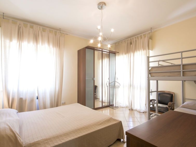 "Il Litorale", apartamento de 3 estancias 70 m2 en el 2° piso. Luminoso, con mobiliario sencillo y funcional: salón con 1 sofá-cama doble, mesa de comedor, TV y aire acondicionado. Salida al balcón. 1 dorm. doble con 1 x 2 literas, aire acondicionado. 1 dorm. con 1 cama doble y aire acondicionado. Cocina (5 fogones, horno, lavavajillas, hervidor de agua eléctrico, cafetera eléctrica) con mesa de comedor. Salida al balcón. Ducha/bidet/WC. Calefacción de gas. 2 balcones. El alojamiento dispone de: lavadora. Internet (Wifi, gratis). Plaza de aparcamiento (vallada, 1 coche) junto a la casa.
