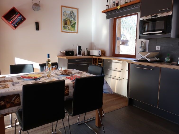 "Ryad C", apartamento de 4 estancias 85 m2, en planta superior, orientación sur. Con mobiliario confortable y de buen gusto: salón-comedor con chiminea nórdica, TV cable y calefacción eléctrica. Salida al balcón. 1 dorm. con 1 cama doble (180 cm, 200 cm de longitud). 1 dorm., pequeño con 2 camas (90 cm, 200 cm de longitud). Cocina abierta (horno, lavavajillas, 4 placas de vitrocerámica, tostadora, hervidor de agua eléctrico, microondas, congelador, cafetera eléctrica, Cápsulas de café (Nespresso), horno Raclette, set de Fondue (queso)). Baño/WC, WC separado. Aire caliente. Planta superior: 1 dorm. con 2 camas (90 cm, 200 cm de longitud). Suelo de parquet. Balcón. Muebles de balcón. Vista muy bonita a las montañas, al paisaje y a la localidad. El alojamiento dispone de: plancha, secador de pelo, leña (gratis). Internet (Wifi, gratis). Plaza de aparcamiento n. Ryad C junto a la casa. A tener en cuenta: apartamento para no fumadores.