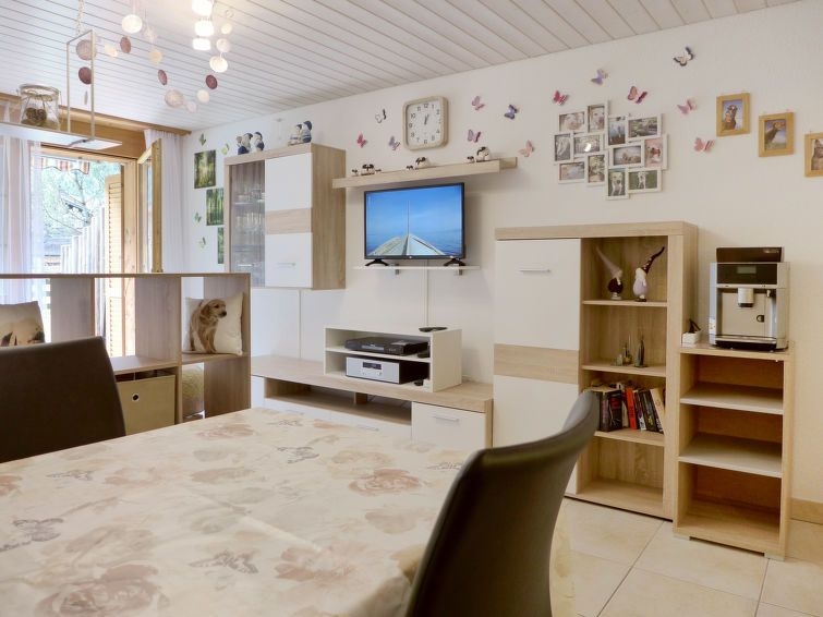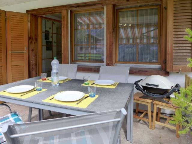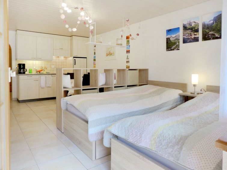 "Studio Schweizerhof" estudio 29 m2, en la planta baja, orientación sureste. Con mobiliario sencillo y agradable: salón-dormitorio con 2 camas (90 cm, 200 cm de longitud), rincón-comedor, TV digital y radio. Salida a la terraza. Cocina abierta (horno, 4 placas de vitrocerámica, microondas, cafetera eléctrica, horno Raclette, set de Fondue (queso)). Ducha/WC. Calefacción por suelo. Terraza 9 m2, orientación sur y orientación este, césped. Muebles de terraza, barbacoa eléctica. Vista espléndida a las montañas y a la localidad. El alojamiento dispone de: secador de pelo. Internet (Wifi, gratis). Plaza de aparcamiento (cubierto). A tener en cuenta: apartamento para no fumadores. 1 mascota / perro.