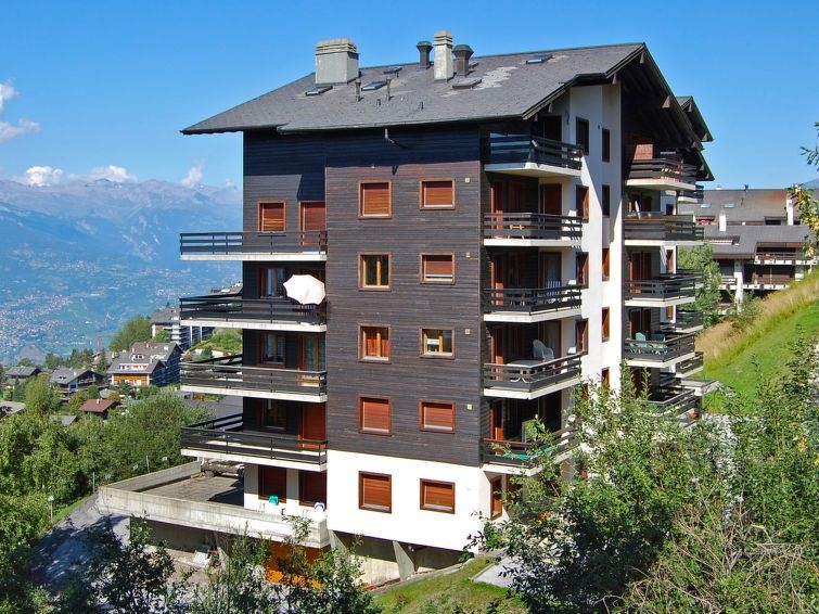 Residencia "La Foret". En la periferia, lugar tranquilo. En el inmueble: ascensor, sala guardaesquís, calefacción central, lavadora, secadora (uso comunitario, extra). En invierno las cadenas de nieve son necesarias. Tienda 500 m, tienda de comestibles 700 m, panadería 500 m, a 5 minutos del centro andando, piscina 800 m. Campo de golf 18 km, tenis 700 m, remontes 500 m, parada de ski-bus 100 m, pista de hielo, parque infantil 700 m. Zonas de esquí populares fácilmente accesibles: 4 Vallées 500 m. Zona de senderismo Bisse vieux 400 m. A tener en cuenta: skibus gratuito.