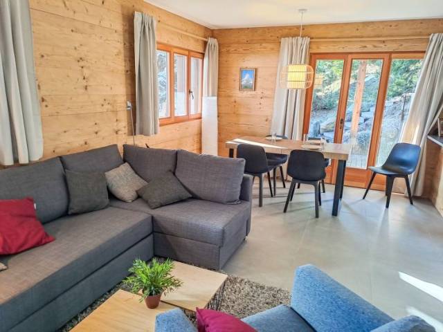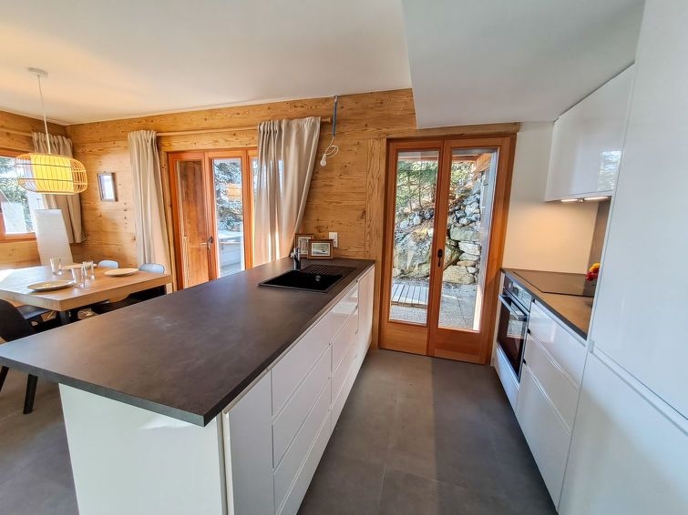 "Sernisa Rez", apartamento de 3 estancias 55 m2, en la planta baja, orientación sur. Completamente reformado en 2022, con mobiliario muy confortable y de buen gusto: salón-comedor grande con TV cable, calefacción eléctrica y estufa de lena. Salida al jardín. 2 dorm., cada habitación con 2 camas dobles (2 x 90 cm, 200 cm de longitud). Rincón-cocina (lavavajillas, 3 Placas de inducción, tostadora, congelador, cafetera eléctrica, Cápsulas de café (nespresso) extra, set de Fondue (queso)). Salida al jardín. Ducha/WC. Césped. Muebles de terraza. Vista parcial a las montañas. El alojamiento dispone de: secador de pelo. Internet (Wifi, gratis). Garaje. A tener en cuenta: adecuado para familias. Apartamento para no fumadores.