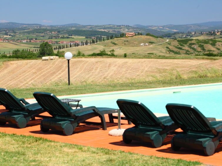 Típico complejo toscano formado por 8 apartamentos, perteneciente a una hacienda agrícola especializada en agricultura biológica en el corazón del espléndido paisaje de la Crete Senesi. Cada apartamento dispone de mobiliario de jardín casa rural "Staffolino", antigua, reformada, rodeada de campos. A 15 km del centro de Siena, a 80 km del centro de Firenze, a 40 km del centro de Montalcino, lugar tranquilo en una colina. Comunitario: terreno, piscina (7 x 14 m, 100 - 150 cm de profundidad, Disponible por temporada: 01.Jun. - 28.Sep.). Muebles de jardín, barbacoa. En el inmueble: calefacción central, calefacción disponible desde el 01.Nov. - 15.Abr.. Acceso (1 km camino de tierra). Aparcamiento en el mismo terreno. Tienda de comestibles 4 km, supermercado 4 km, centro comercial 15 km, restaurante 4 km, parada de autobús 4 km, estación de tren "Arbia" 4 km, piscina termal "Rapolano Terme" 15 km. Campo de golf (18 hoyos) 25 km, tenis 15 km, centro ecuestre 16 km. Atracciones en los alrededores: Crete Senesi (Biancane di Leonina) 2 km, Site Transitoire Leonina 4 km, Abbazia Monte Oliveto 25 km, Parco Naturale Val d'Orcia 50 km. A tener en cuenta: coche recomendable. La foto corresponde a una de las viviendas. Mountain-bikes de alquiler. Restaurante/pizzeria también para celíacos a 3 km. "B3", apartamento de 2 estancias 50 m2, en la planta baja. Con mobiliario sencillo y rústico: 1 dorm. doble con ventilador. 1 dorm. con 2 camas y ventilador. Cocina-comedor (4 fogones, horno, congelador). Ducha/bidet/WC. Césped. Vista panorámica. El alojamiento dispone de: Internet (Wifi, gratis). 1 mascota / perro.