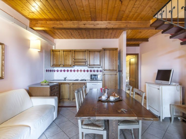 "Le Capanne III", casa adosada 4 estancias 70 m2 en 2 plantas. Con mobiliario bonito: salón-comedor con TV satélite. Salida al balcón acristalado. 1 dorm. con 2 camas. Rincón-cocina (lavavajillas, hervidor de agua eléctrico, microondas, cafetera eléctrica). Ducha/bidet/WC. Planta superior: 2 dorm., cada habitación con 2 camas. Ducha/bidet/WC. Aire acondicionado. Terraza cubierta, terraza-jardín. Muebles de terraza. El alojamiento dispone de: Internet (Wifi, gratis). A tener en cuenta: 1 mascota / perro. Entrada privada.