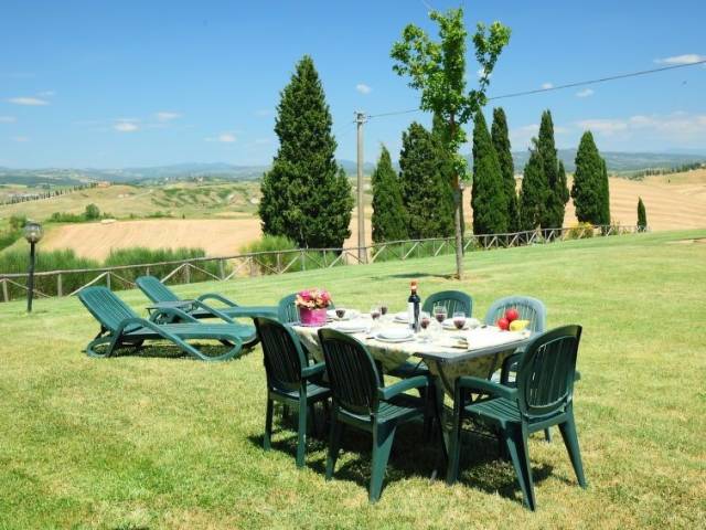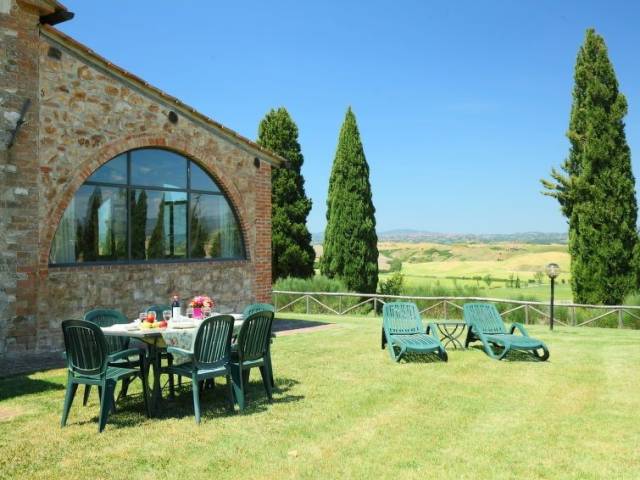 Típico complejo toscano formado por 8 apartamentos, perteneciente a una hacienda agrícola especializada en agricultura biológica en el corazón del espléndido paisaje de la Crete Senesi. Cada apartamento dispone de mobiliario de jardín casa rural "Staffolino", antigua, reformada, rodeada de campos. A 15 km del centro de Siena, a 80 km del centro de Firenze, a 40 km del centro de Montalcino, lugar tranquilo en una colina. Comunitario: terreno, piscina (7 x 14 m, 100 - 150 cm de profundidad, Disponible por temporada: 01.Jun. - 28.Sep.). Muebles de jardín, barbacoa. En el inmueble: calefacción central, calefacción disponible desde el 01.Nov. - 15.Abr.. Acceso (1 km camino de tierra). Aparcamiento en el mismo terreno. Tienda de comestibles 4 km, supermercado 4 km, centro comercial 15 km, restaurante 4 km, parada de autobús 4 km, estación de tren "Arbia" 4 km, piscina termal "Rapolano Terme" 15 km. Campo de golf (18 hoyos) 25 km, tenis 15 km, centro ecuestre 16 km. Atracciones en los alrededores: Crete Senesi (Biancane di Leonina) 2 km, Site Transitoire Leonina 4 km, Abbazia Monte Oliveto 25 km, Parco Naturale Val d'Orcia 50 km. A tener en cuenta: coche recomendable. La foto corresponde a una de las viviendas. Mountain-bikes de alquiler. Restaurante/pizzeria también para celíacos a 3 km. "Capanna", casa 4 estancias 110 m2 en 2 plantas. Con mobiliario confortable y rústico: salón 28 m2, grande con ventanal con 1 sofá-cama doble y TV (pantalla plana). Cocina-comedor (4 fogones, horno, lavavajillas, congelador) con mesa de comedor. Salida al jardín. Ducha/bidet/WC. Planta superior: 1 dorm. doble con ventilador. 1 dorm. con 2 camas y ventilador. Ducha/bidet/WC. Césped. Muebles de terraza, rincón para sentarse. El alojamiento dispone de: lavadora. Internet (Wifi, gratis). 1 mascota / perro.
