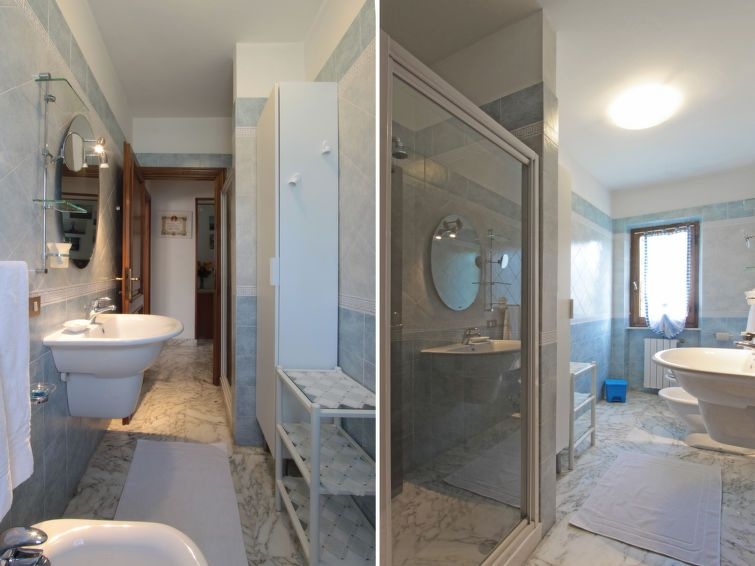 "Simonetta", villa 4 estancias 130 m2, en la planta baja. Con mobiliario confortable y de buen gusto: salón-comedor con TV satélite (pantalla plana). 2 dorm. dobles, cada habitación con aire acondicionado. 1 dorm. con 2 camas y aire acondicionado. Rincón-cocina (4 fogones, lavavajillas, microondas, congelador). 2 ducha/bidet/WC. Calefacción (extra). Terraza cubierta. Muebles de terraza. El alojamiento dispone de: lavadora, plancha, mosquitera. Internet (Wifi, gratis).