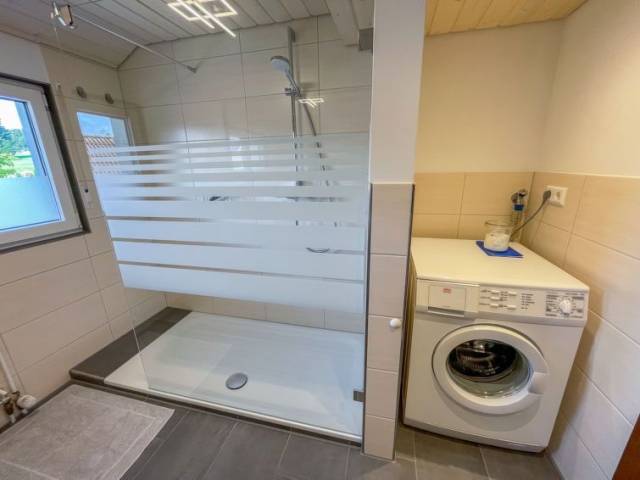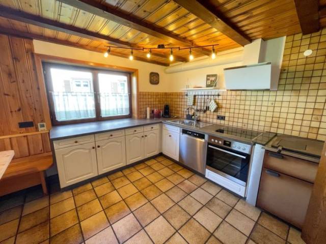 Casa 5 estancias. Espacioso y luminoso, con mobiliario muy bonito y de buen gusto: salón-comedor con ventanal. Grande cocina-comedor (horno, lavavajillas, 4 placas de vitrocerámica, microondas, cafetera eléctrica) con mesa de comedor. WC separado. Planta superior: salón grande con TV satélite y pantalla plana. 2 dorm. dobles, cada habitación con 2 camas dobles (2 x 90 cm, 200 cm de longitud). 1 dorm., pequeño con 1 cama (90 cm, 200 cm de longitud). Ducha, WC separado, doble lavabo. El alojamiento dispone de: lavadora. Internet (Wifi). Adecuado para familias.