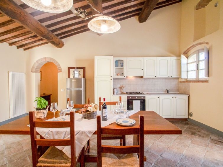 Esta antigua granja de piedra, recientemente restaurada, está situada en una gran explotación agrícola en activo, toda vallada, a 30 km de Siena y 60 km de Florencia, en el corazón del Chianti. En el cuerpo central de la cabaña, se han equipado 8 apartamentos respetando las características arquitectónicas de origen, con las vigas de madera y los suelos típicos de terracota toscana. Los huéspedes pueden realizar largos paseos a pie o en bicicletas y pescar a orillas de dos grandes lagos situados alrededor de la granja. Sala común para degustación, cenas, recepciones y bodas. Venta de productos típicos toscanos, en parte prodcuidos en la hacienda familiar (el aceite de oliva, vino y salami) y agronegocio de Siena. Cada apartamento tiene la zona al aire libre amueblada. Casa rural idónea para niños, sencilla, confortable del siglo 18°, reformada, rodeada de árboles y campos. A 9 km del centro de Colle Val d'Elsa, a 3 km del centro de Casole d'Elsa, a 20 km del centro de San Gimignano, lugar tranquilo en una pendiente, en el campo. Comunitario: terreno, piscina (7 x 15 m, 120 - 160 cm de profundidad, Disponible por temporada: 08.May. - 02.Oct.) con escalera interior. Ducha exterior, barbacoa. En el complejo: recepción, calefacción central, lavadora (uso comunitario, extra), posibilidad de pagar la calefacción en plaza (01.Nov. - 15.Abr.), calefacción disponible desde el 01.Nov. - 15.Abr.. Posibilidad de limpieza (extra). Aparcamiento junto a la casa en el mismo terreno. Tienda 3 km, tienda de comestibles 3 km, supermercado 9 km, restaurante 3 km, estación de tren "Poggibonsi" 20 km. Tenis 15 km, centro ecuestre 15 km. A tener en cuenta: coche recomendable. La foto corresponde a una de las viviendas. Se pueden reservar alojamientos adicionales. "Il Granaio", apartamento de 2 estancias 70 m2, en la planta baja. Con mobiliario confortable y de buen gusto: salón-comedor con 1 sofá-cama doble y TV. 1 dorm. doble. Rincón-cocina (4 fogones, horno, congelador). Ducha/bidet/WC. Jardín. El alojamiento dispone de: Internet (Wifi, gratis). 1 mascota / perro.