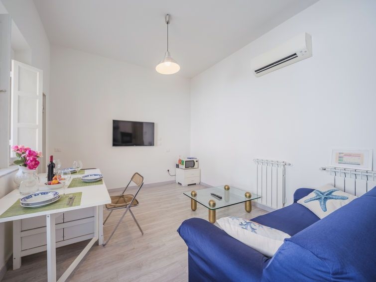 "Libeccio", casa 4 estancias 130 m2 en 2 plantas, en planta superior. Espacioso y luminoso, reformada, con mobiliario muy funcional y agradable: salón-comedor grande con 1 sofá-cama, mesa de comedor y TV (pantalla plana), aire acondicionado. 1 dorm. doble, grande con aire acondicionado. 1 dorm. doble, grande con mesa de comedor, rincón cocina, ducha/bidet/WC y TV (pantalla plana), aire acondicionado. Salida al balcón. Rincón-cocina (4 fogones, horno, tostadora, hervidor de agua eléctrico, microondas, congelador) con mesa de comedor. Ducha/bidet/WC. Calefacción de gas, aire acondicionado. Calefacción disponible desde el 01.11. al 15.04. Planta superior: salón-dormitorio abierto grande con 1 cama doble, mesa de comedor, rincón cocina y aire acondicionado. Ducha/bidet/WC. Terraza grande. Muebles de terraza, rincón para sentarse.