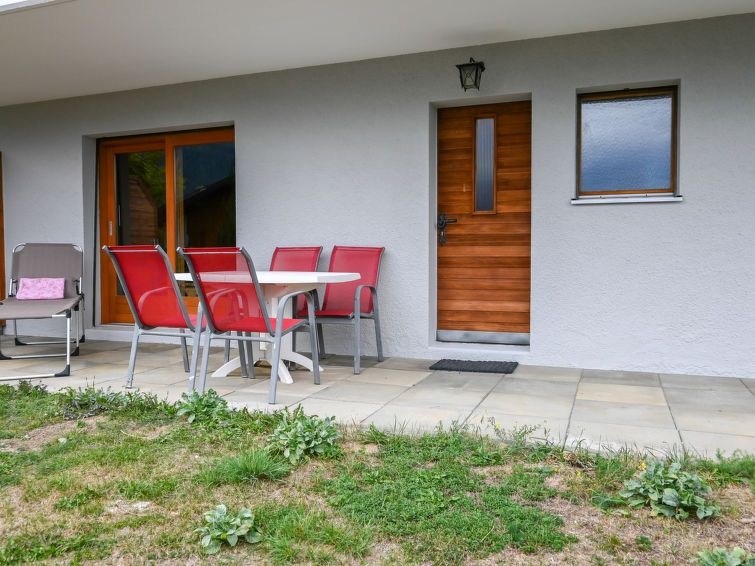 Apartamento de 2 estancias en la planta baja, orientación sureste. Con mobiliario confortable y rústico: salón-comedor con mesa de comedor y TV cable. Salida al jardín, a la terraza. 1 dorm. con 1 cama (160 cm, 200 cm de longitud). Cocina abierta (lavavajillas, 4 placas de vitrocerámica, cafetera eléctrica, Cápsulas de café (Nespresso) extra, horno Raclette, set de Fondue (queso)). Ducha/WC. Terraza. Muebles de terraza, tumbonas (2). Bonita a las montañas. El alojamiento dispone de: secador de pelo. Plaza de aparcamiento (1 coche) junto a la casa.