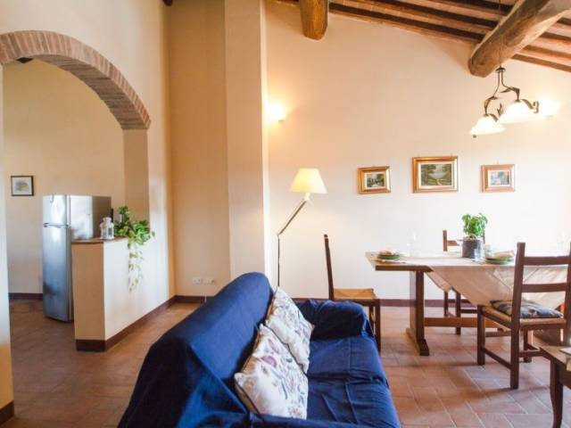 Esta antigua granja de piedra, recientemente restaurada, está situada en una gran explotación agrícola en activo, toda vallada, a 30 km de Siena y 60 km de Florencia, en el corazón del Chianti. En el cuerpo central de la cabaña, se han equipado 8 apartamentos respetando las características arquitectónicas de origen, con las vigas de madera y los suelos típicos de terracota toscana. Los huéspedes pueden realizar largos paseos a pie o en bicicletas y pescar a orillas de dos grandes lagos situados alrededor de la granja. Sala común para degustación, cenas, recepciones y bodas. Venta de productos típicos toscanos, en parte prodcuidos en la hacienda familiar (el aceite de oliva, vino y salami) y agronegocio de Siena. Cada apartamento tiene la zona al aire libre amueblada. Casa rural idónea para niños, sencilla, confortable del siglo 18°, reformada, rodeada de árboles y campos. A 9 km del centro de Colle Val d'Elsa, a 3 km del centro de Casole d'Elsa, a 20 km del centro de San Gimignano, lugar tranquilo en una pendiente, en el campo. Comunitario: terreno, piscina (7 x 15 m, 120 - 160 cm de profundidad, Disponible por temporada: 08.May. - 02.Oct.) con escalera interior. Ducha exterior, barbacoa. En el complejo: recepción, calefacción central, lavadora (uso comunitario, extra), posibilidad de pagar la calefacción en plaza (01.Nov. - 15.Abr.), calefacción disponible desde el 01.Nov. - 15.Abr.. Posibilidad de limpieza (extra). Aparcamiento junto a la casa en el mismo terreno. Tienda 3 km, tienda de comestibles 3 km, supermercado 9 km, restaurante 3 km, estación de tren "Poggibonsi" 20 km. Tenis 15 km, centro ecuestre 15 km. A tener en cuenta: coche recomendable. La foto corresponde a una de las viviendas. Se pueden reservar alojamientos adicionales.