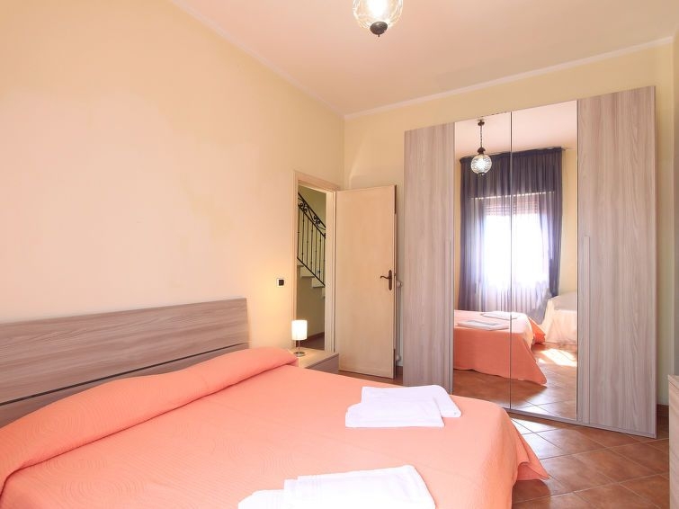 "Villa Gino", casa 6 estancias 155 m2 en 2 plantas. Espacioso y luminoso, con mobiliario confortable y bonito: salón-comedor con TV (pantalla plana). Salida a la terraza-jardín. 1 dorm. doble. Cocina (4 fogones, horno, lavavajillas, microondas, congelador) con mesa de comedor. Ducha/bidet/WC. Planta superior: 1 dorm. doble con aire acondicionado. Salida al balcón. 1 dorm. doble. Salida al balcón. 1 dorm. doble con ducha/bidet/WC y aire acondicionado. 1 dorm. con 1 cama y 1 cama-nido. Ducha/bidet/WC. Calefacción (extra). Terraza-jardín. Muebles de terraza, barbacoa. El alojamiento dispone de: lavadora, plancha, secador de pelo. Internet (Wifi, gratis). 1 mascota / perro.