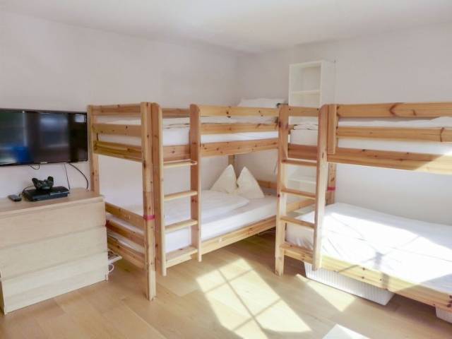 "Laerchehus Ost", apartamento de 3 estancias 84 m2, en la planta baja. Espacioso y luminoso, con mobiliario moderno y agradable: salón abierto con cortina con TV satélite, pantalla plana, DVD y home cinema. Salida a la terraza. 1 dorm. con 1 cama doble (160 cm, 200 cm de longitud), TV, equipo de música y DVD. 1 dorm. para niños con 2 x 2 literas, pantalla plana y DVD. Grande cocina abierta (horno, lavavajillas, 4 placas de vitrocerámica, microondas, cafetera eléctrica, Cápsulas de café (Nespresso) extra, set de Fondue (queso)) con mesa de comedor. Baño/WC, ducha/WC. Terraza grande, orientación sur y orientación oeste. Muebles de terraza, tumbonas. Vista espléndida a las montañas y al paisaje. El alojamiento dispone de: plancha, trona, cuna hasta 2 años, secador de pelo. Internet (Wifi, gratis). Garaje. A tener en cuenta: adecuado para familias. Apartamento para no fumadores. Detector de humo, extintores.