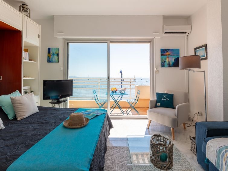 Estudio 28 m2 en el 2° piso. Espacioso y luminoso, con mobiliario bonito: salón-comedor con 1 cama-armario (140 cm, 190 cm de longitud), TV y pantalla plana. Salida al balcón. Cocina en la entrada (lavavajillas, 2 placas de vitrocerámica, tostadora, hervidor de agua eléctrico, microondas, congelador, cafetera eléctrica, Cápsulas de café (Expresso) extra). Balcón, terraza 6 m2. Muebles de balcón. Vista espléndida al mar. El alojamiento dispone de: lavadora, plancha, secador de pelo. Internet (Wifi, gratis). Plaza de aparcamiento (vallada). A tener en cuenta: TV solamente FR. Detector de humo. Oferta de un particular según el art. 155, IV del CGI.