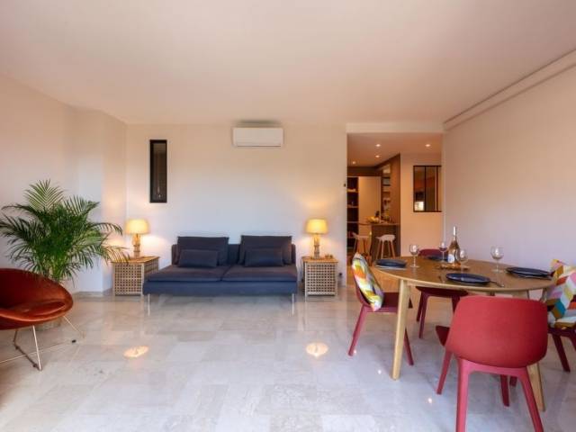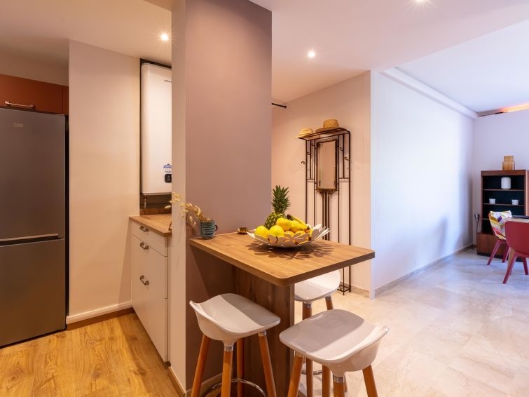 Apartamento de 3 estancias 67 m2 en el 3° piso. Luminoso, completamente reformado en 2023, con mobiliario muy bonito y de estilo: salón-comedor con ventanal con TV (pantalla plana). Salida a la terraza. 1 dorm., grande con Vestidor con 1 cama de matrimonio (160 cm, 200 cm de longitud), ducha y doble lavabo. 1 dorm. con 1 cama de matrimonio (140 cm, 190 cm de longitud), ducha. Rincón-cocina (horno, lavavajillas, 3 Placas de inducción, tostadora, hervidor de agua eléctrico, microondas, congelador, cafetera eléctrica, Cápsulas de café (senseo) extra). WC separado. Calefacción eléctrica, aire acondicionado. Suelo de madera. Terraza 8 m2. Muebles de terraza. Vista parcial al mar y al paisaje. El alojamiento dispone de: lavadora, plancha, secador de pelo. Internet (Wifi, gratis). Plaza de aparcamiento n. 878. A tener en cuenta: TV solamente FR. Detector de humo. Oferta de un particular según el art. 155, IV del CGI.