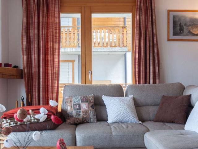 "Grand Panorama B2", apartamento de 4 estancias en el 2° piso. Con mobiliario confortable y bonito: entrada. Salón-comedor con chimenea y TV cable. Salida al balcón, a la terraza, orientación norte y orientación este. 1 dorm. con 1 cama de matrimonio (180 cm, 200 cm de longitud), baño/WC. Salida al balcón. 1 dorm. con 1 cama de matrimonio (160 cm, 200 cm de longitud). Salida al balcón. 1 dorm. con 1 cama de matrimonio (160 cm, 200 cm de longitud). Cocina abierta (horno, lavavajillas, 4 placas de vitrocerámica, tostadora, hervidor de agua eléctrico, microondas, cafetera eléctrica, Cápsulas de café (Nespresso) extra, horno Raclette, set de Fondue (queso)). Ducha/WC. Balcón, orientación norte y orientación este, terraza pequeña, orientación este. Muebles de balcón, barbacoa, tumbonas (1). Vista bonita a las montañas. El alojamiento dispone de: trona, cuna, secador de pelo. Internet (Wifi, gratis). Plaza de aparcamiento (2 Coches). A tener en cuenta: apartamento para no fumadores. Permitido máximo 1 mascota / perro.