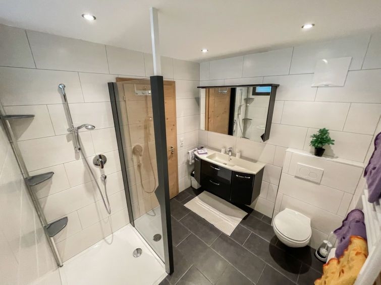 "Stöckl", apartamento de 3 estancias 50 m2, en la planta baja. Luminoso, con mobiliario moderno: 2 dorm. dobles, cada habitación con TV satélite. Cocina-comedor (horno, lavavajillas, 4 placas de vitrocerámica, tostadora, hervidor de agua eléctrico, microondas, cafetera eléctrica) con rincón-comedor y TV satélite. Salida a la terraza. Ducha/WC. Calefacción gasóleo. Terraza 20 m2. Muebles de terraza, barbacoa (portátil). Vista panorámica bonita a las montañas y a la localidad. El alojamiento dispone de: Internet (Wifi, gratis). A tener en cuenta: casa para no fumadores. Entrada privada, detector de humo, extintores.