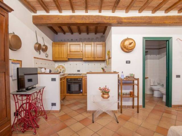 "Podere Fontemaggio - Monolocale" estudio 30 m2, en la planta baja. Con mobiliario bonito y agradable: salón-dormitorio con 1 cama doble, mesa de comedor y TV. Rincón-cocina (horno, lavavajillas, 4 fuegos, cafetera eléctrica). Ducha/WC. Calefacción. Suelo de piedra natural. Terraza-jardín. Tumbonas. Vista bonita al jardín. El alojamiento dispone de: trona, cuna. Internet (Wifi). A tener en cuenta: apartamento para no fumadores. 1 mascota pequeña / perro. Entrada privada. No hay costos locales adicionales, excepto la tasa local de turismo.