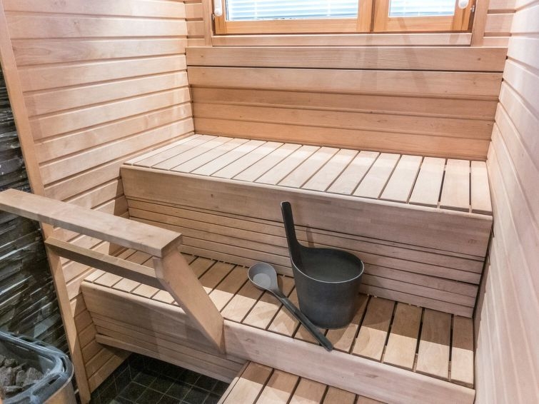 170 km al norte de Rovaniemi, en el centro vacacional de Levi en el área Levijärvi. Casa adosada (de troncos panelados), construida en 2014. Cocina-salón, 2 dormitorios, cada uno con 2 camas individuales (hechas como camas dobles), buhardilla 2 camas individuales, sauna (estufa eléctrica), baño (2 duchas), lavadero / vestidor, patio cubierto, parrilla a gas, depósito. Bomba térmica con alimentación de aire, reproductor DVD %3D blu ray, cuna %3D cama de viaje de bebé, barrera de seguridad infantil en la planta baja y superior. Secador de pelo. Ahumador eléctrico de pescado. Dos TV. Cómodamente amueblado, moderno apartamento en una zona tranquila de cabañas vacacionales. Mascotas también están bienvenidas (máx. 2 mascotas), tarifa adicional según el número de mascotas. Tobogán y deslizador. Servicios del centro Levi a 2.5-3.0 km. La pista de esquí más cercana es Eturinne a 2.9 km. Campo de golf a 6.5 km.