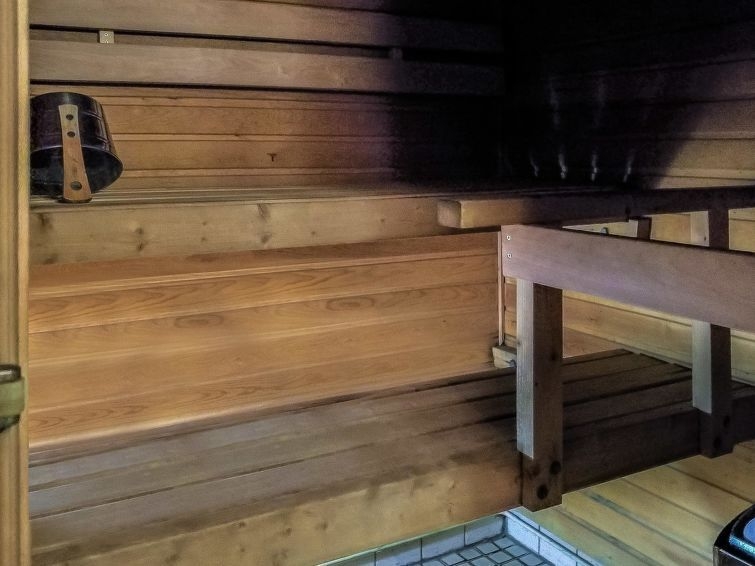 258 km al norte de Rovaniemi, en el centro vacacional de Saariselkä en una ubicación central. Apartamento en casa adosada de madera, construida en 1975, renovada más tarde. Cocina-salón con sofá-cama, buhardilla con 2 camas individuales, en la buhardilla también hay un nicho espacioso con cama doble, sauna (estufa eléctrica), cuarto de ducha, WC separado, vestidor, pasillo, despensa, barrera de seguridad infantil en la planta superior. Banco para el encerado de esquís en la despensa, equipo de karaoke. WLAN conexión a Internet. Dos toboganes. Cama infantil bajo petición. Iluminado sendero de esquí a 20 m de distancia. Debido a su posición céntrica, tiendas, restaurantes, spa y otros servicios del centro de Saariselkä están cerca. Aeropuerto de Ivalo a 28 km.