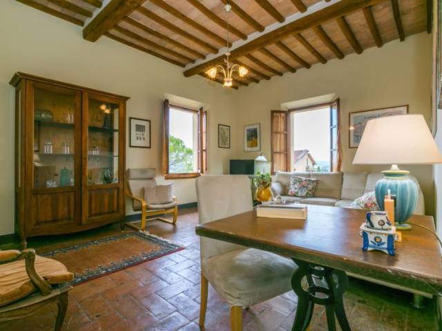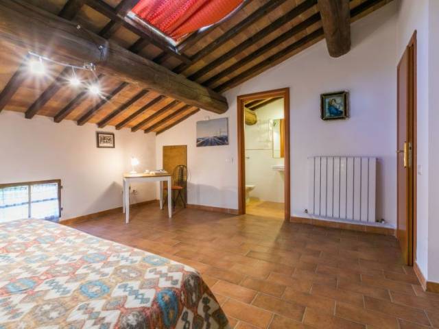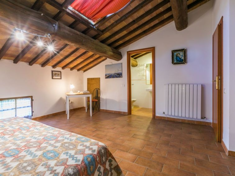 Casa de campo "Giuggiolo", agradable, rodeada de árboles y viñedos. 3 casas en la residencia. 4 apartamentos en la residencia. En el aldea Casaglia, a 4 km del centro de Poggibonsi, a 11 km del centro de San Gimignano, a 30 km del centro de Siena, lugar soleado, en el campo. Comunitario: jardín grande, bonito 5'000 m2 (vallado) con plantas y árboles, pradera, piscina (14 x 7 m, 120 - 160 cm de profundidad, Disponible por temporada: 02.May. - 03.Oct.). Terraza, mantenimiento de la piscina a través del propietario/jardinero. Acceso durante 800 m hasta el terreno (camino de tierra). Aparcamiento en el mismo terreno. Supermercado 2 km, estación de tren "Poggibonsi" 4 km. A tener en cuenta: residencia con puertas de cierre eléctrico. El propietario vive en el mismo inmueble. Cata de vinos en una bodega cerca de San Gimignano a 17 km 1 vez por estancia incluida (bajo petición).