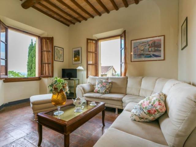 "Giuggiolo - Giuggiolo 5", apartamento de 4 estancias 140 m2 en 2 plantas en el 2° piso. Con mobiliario bonito y agradable: planta superior 2: salón con TV satélite. 1 dorm. con 1 cama de matrimonio (160 cm). 1 dorm. con 1 cama de matrimonio (160 cm), ducha/bidet/WC. Cocina (lavavajillas, 4 fuegos, hervidor de agua eléctrico, congelador, cafetera eléctrica) con mesa de comedor. Baño/bidet/WC. Planta superior 3: (escalera empinada) 1 dorm., abuhardillado, abierto con tragaluz con 2 camas (80 cm), ducha/bidet/WC y calefacción de gas. Terraza-jardín, jardín pequeño. Muebles de terraza. Vista bonita. El alojamiento dispone de: Internet (Wifi, gratis). A tener en cuenta: apartamento para no fumadores. Permitido máximo 2 mascotas pequeñas / perros.