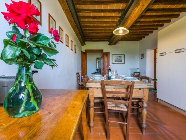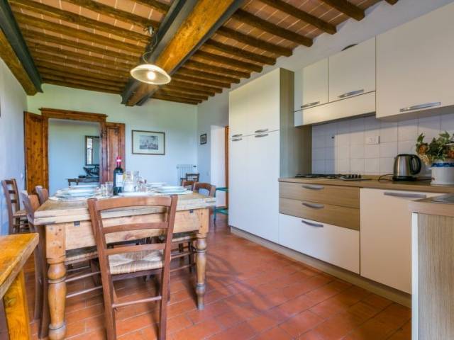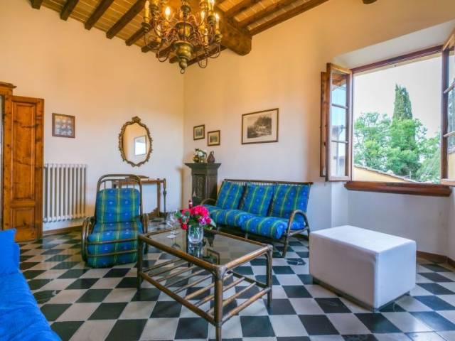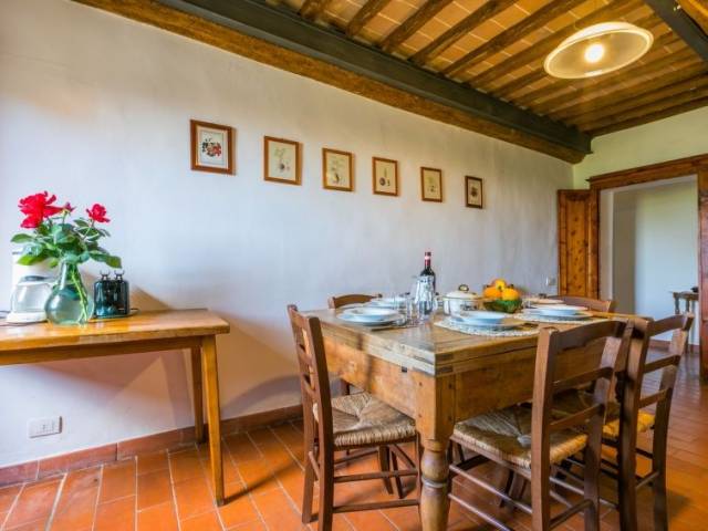 Casa de campo "Giuggiolo", agradable, rodeada de árboles y viñedos. 3 casas en la residencia. 4 apartamentos en la residencia. En el aldea Casaglia, a 4 km del centro de Poggibonsi, a 11 km del centro de San Gimignano, a 30 km del centro de Siena, lugar soleado, en el campo. Comunitario: jardín grande, bonito 5'000 m2 (vallado) con plantas y árboles, pradera, piscina (14 x 7 m, 120 - 160 cm de profundidad, Disponible por temporada: 02.May. - 03.Oct.). Terraza, mantenimiento de la piscina a través del propietario/jardinero. Acceso durante 800 m hasta el terreno (camino de tierra). Aparcamiento en el mismo terreno. Supermercado 2 km, estación de tren "Poggibonsi" 4 km. A tener en cuenta: residencia con puertas de cierre eléctrico. El propietario vive en el mismo inmueble. Cata de vinos en una bodega cerca de San Gimignano a 17 km 1 vez por estancia incluida (bajo petición).