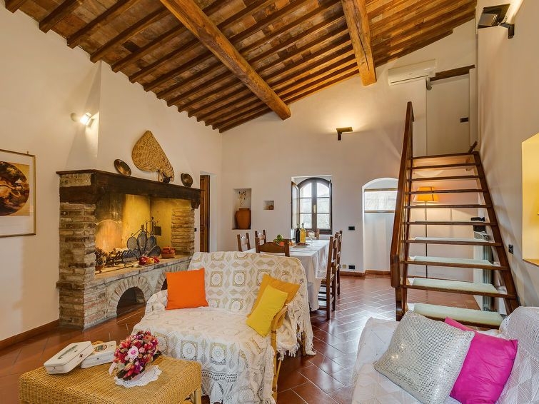Casa de campo "Antico Borgo San Lorenzo", muy bonita, agradable, confortable del siglo 11°, reformada en 1998, rodeada de prados, campos y viñedos. 5 casas en la residencia. 10 apartamentos en la residencia. A 4 km del centro de Colle di Val d'Elsa, a 14 km del centro de San Gimignano, a 24 km del centro de Siena, lugar aislado, soleado en una colina, a 70 km de la playa, en el campo. Comunitario: terreno 5 ha, jardín (no está vallado) con plantas y flores, pradera, piscina (16 x 8 m, 140 - 150 cm de profundidad, Disponible por temporada: 15.Abr. - 31.Oct.). Ducha exterior, tenis de mesa, terraza, barbacoa, parque infantil. En el inmueble: futbolín, lavadora, secadora (uso comunitario, extra), alquiler de bicicletas. Acceso durante 1.2 km (camino de tierra). Aparcamiento (cubierto) en el mismo terreno. Tienda de comestibles 4 km, supermercado 4 km, panadería 3 km, estación de tren "Colle di Val d'Elsa" 4 km, playa de arena "Cecina Mare" 73 km, piscina cubierta 6 km. Rutas de senderismo desde la casa 100 m. Atracciones en los alrededores: Monteriggioni 12 km, Certaldo 25 km, Volterra 32 km, Firenze 60 km, Montalcino 66 km. A tener en cuenta: coche recomendable. Adecuado para familias, equipamiento para bebés (incluido). Adecuado para eventos. Bajo petición: transfer desde el aeropuerto a la vivienda de vacaciones. Venta local de productos de granja. Todas las casas/apartamentos están diseñadas y amuebladas de manera diferente. "Antico Borgo S Lorenzo Cipresso", apartamento de 3 estancias 90 m2 en 2 plantas. Vivienda adecuada para 4 adultos + 3 niños. Espacioso, completamente reformado, con mobiliario de buen gusto y agradable: planta superior: (escalera exterior) salón-dormitorio con 1 sofá-cama doble, chimenea, mesa de comedor y TV satélite. 1 dorm. con 2 camas. Cocina (horno, lavavajillas, 4 fuegos, cafetera eléctrica). Baño/bidet/WC, bañera de hidromasaje. Calefacción de gas, aire acondicionado. Buhardilla: 1 dorm., abuhardillado con 1 cama y 1 cama doble. Suelo de piedra natural. Mobiliario confortable de estilo rural. Terraza pequeña cubierta. Muebles de terraza. Vista bonita al paisaje. El alojamiento dispone de: caja fuerte, mosquitera, trona, cuna hasta 2 años, secador de pelo. Internet (Wifi, gratis). Plaza de aparcamiento n. 2 (cubierto). A tener en cuenta: adecuado para familias. Apartamento para no fumadores. 1 mascota / perro. Entrada privada.