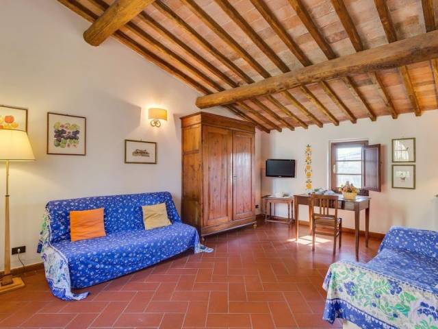 "Antico Borgo San Lorenzo - Fico", apartamento de 3 estancias 75 m2, en la planta baja. Vivienda adecuada para 4 adultos + 2 niños. Espacioso, completamente reformado, con mobiliario bonito y de buen gusto: salón-dormitorio con 1 sofá-cama doble y TV satélite. 1 dorm. con 1 cama doble. 1 dorm. con 2 camas. Cocina (horno, lavavajillas, 4 Placas de inducción, cafetera eléctrica) con mesa de comedor. Salida a la terraza. Ducha/bidet/WC. Calefacción de gas, aire acondicionado. Suelo de piedra natural. Mobiliario confortable de estilo rural. Terraza, terraza-jardín. Muebles de terraza. Vista bonita al paisaje. El alojamiento dispone de: mosquitera, trona, cuna hasta 2 años, secador de pelo. Internet (Wifi, gratis). Plaza de aparcamiento n. 2 (cubierto). A tener en cuenta: adecuado para familias. Apartamento para no fumadores. 1 mascota / perro. Entrada privada.