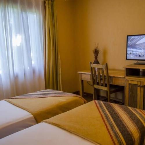 El Calafate, ArgentinaEl hotel disfruta de una ubicación privilegiada a los pies de los cerros Torre y Fitz Roy, en el Parque Nacional Los Glaciares, a aproximadamente 1 km de El Chaltén, en la provincia argentina de Santa Cruz.Se trata de un establecimiento ganadero centenario. Su recinto se encuentra en el corazón del Parque Nacional Los Glaciares, en un marco de belleza excepcional. Les brinda a sus huéspedes el máximo confort y refleja la historia del paraje desde los albores de la gesta pionera hasta la actualidad. Es un hotel de 30 habitaciones en total, dotado de vestíbulo con servicio de salida y recepción 24 horas, caja fuerte, servicio de cambio de divisas y guardarropa. Además, dispone de sala de juegos, salón de TV, cafetería, bar, pub y restaurante, así como instalaciones para conferencias para los clientes de negocios. Además, está dotado de servicio de habitaciones y de lavandería, al igual que de aparcamiento y servicio de alquiler de bicicletas.Todas las habitaciones disponen de alfombras y están provistas de cuarto de baño privado con ducha, bañera, bañera de hidromasaje y calefacción regulable. Igualmente, cuentan con cama doble o extra grande.Los huéspedes pueden hacer uso de la terraza y la bañera de hidromasaje, o bien explorar la region en actividades de trekking o en bicicleta.El hotel sirve desayuno y almuerzo en forma de bufet, mientras que la cena está disponible de menú.