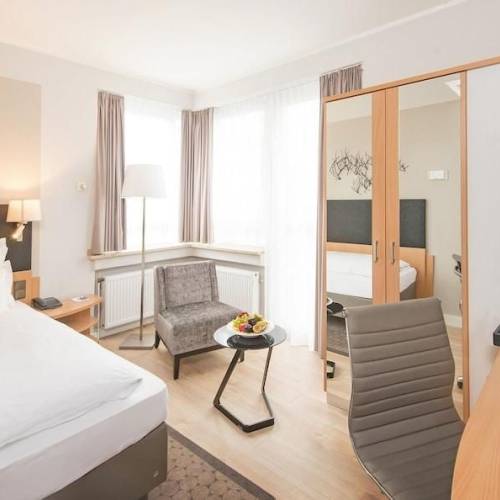 Köln, AlemaniaNuestro KOMMERZHOTEL en Breslauer Platz es una dirección de primera clase para usted, ya sea que venga a Colonia como turista o por negocios. El hotel está justo al lado de la catedral, la estación principal de tren, los museos de la ciudad reconocidos internacionalmente, la Filarmónica, el Musical Dome y el casco antiguo de Colonia. Koelnmesse y el Lanxess Arena se encuentran a pocos minutos en tren. En nuestro hotel, nuevamente regentado por sus propietarios a partir de 2021, le damos la bienvenida con un servicio atento y un ambiente personal e individual. Todas nuestras 77 cómodas habitaciones, incluidas las familiares para hasta cuatro personas, cuentan con Wi-Fi gratis y televisión por satélite, y muchas disfrutan de vistas a la catedral de Colonia. Disfrute de nuestro extenso desayuno buffet gourmet mientras disfruta de las vistas únicas de nuestra catedral de Colonia. ¡Un comienzo ideal para tu día! Relájese en nuestra zona de spa con sauna finlandesa, duchas de hidromasaje y zona de relajación. Y, si tiene ganas de hacer ejercicio, diríjase a nuestro gimnasio con los últimos equipos de TECHNOGYM - The Wellness Company.