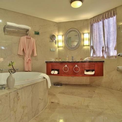 Wenzhou, ChinaEl hotel queda a solo 25 minutos en coche del aeropuerto de Wenzhou Yongqiang y está aproximadamente a una hora de lugares preciosos como la montaña Yandang y el río Nanxi.El hotel ofrece 409 habitaciones decoradas con muy buen gusto, entre las que se incluyen 73 habitaciones Horizon Club y 34 suites, todas con vistas a la montaña o al río. Se trata de un hotel totalmente climatizado con vestíbulo con servicio de recepción 24 horas, ascensor, sala de desayunos/comedor, instalaciones para conferencias, servicio de habitaciones (por un cargo extra) y servicio de lavandería.Las habitaciones de este hotel ofrecen minibar, cafetera/tetera y TV vía satélite, así como cuarto de baño privado con ducha y secador de pelo. Las habitaciones adecuadas para viajes de negocios están equipadas con conexión a Internet de alta velocidad, teléfono multilínea con línea directa y escritorio. Todas disponen asimismo de cama doble o extra grande, caja fuerte, aire acondicionado y calefacción central.El hotel ofrece a sus huéspedes piscina cubierta y gimnasio (ambos por un suplemento).El bonito Shang Palace, con 17 comedores privados de lujo, sirve auténtica cocina Ou, además de especialidades cantonesas y de Huaiyang. El innovador restaurante O Cafe ofrece un nuevo estilo de bufet occidental con sabores asiáticos en un local con cocina abierta.