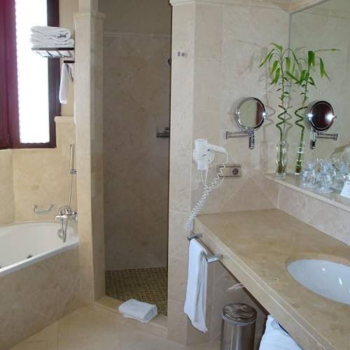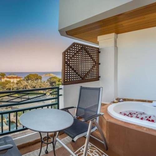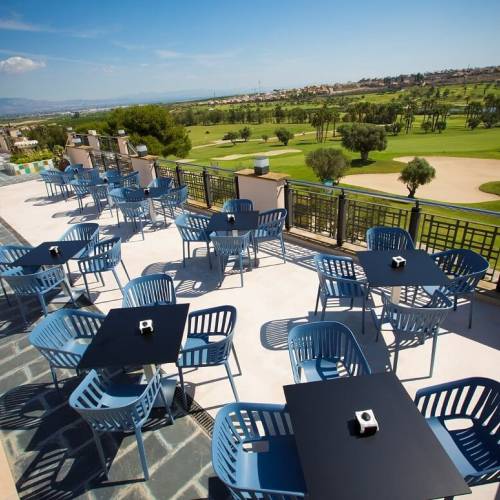 Alicante, EspañaEste hotel está situado en una zona tranquila, pertenece al complejo Villaitana Wellness Golf y Business Sun Resort, con sus 2 campos de golf, y se encuentra a unos 7 km del centro de la localidad, donde podrá encontrar una gran cantidad de tiendas, comercios y lugares de ocio y entretenimiento. Con el coche llegará en 10min a la playa de Poniente, mientras que al aeropuerto de Alicante llegará en 40 minutos en coche.Este hotel de lujo abrió sus puertas en el año 2006 y cuenta con un total de 175 habitaciones, de las que 146 superior, 13 Junior suites, 14 suite Excutive, 1 Suite Presidencial y 1 suite Real. Ofrece a sus huéspedes numerosas instalaciones, como el elegante bar del vestíbulo, que sirve aperitivos durante todo el día y ofrece un ambiente moderno y relajado. El hotel cuenta también con varios restaurantes, un business center con conexión a Internet, sala de conferencias y servicio de lavandería.Este hotel de lujo abrió sus puertas en el año 2006 y cuenta con un total de 175 habitaciones, de las que 146 superior, 13 Junior suites, 14 suite Excutive, 1 Suite Presidencial y 1 suite Real. Ofrece a sus huéspedes numerosas instalaciones, como el elegante bar del vestíbulo, que sirve aperitivos durante todo el día y ofrece un ambiente moderno y relajado. El hotel cuenta también con varios restaurantes, un business center con conexión a Internet, sala de conferencias y servicio de lavandería.En el recinto exterior encontrará 2 campos de golf de 18 hoyos (par 72 y 62), un campo de práctica y un club de golf con restaurante y cafetería. Además, se ofrecen 5 canchas de padel, una de tenis y una plaza multideporte. En la zona de piscina encontrará una piscina, una piscina climatizada, una piscina exterior y una piscina infantil. También hay una sala de Fitness y yoga.