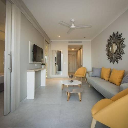 Guía de Isora, EspañaLas Terrazas de Abama son apartamentos de lujo en el Tenerife más exclusivo. Con uno, dos o tres dormitorios cada uno y terrazas abiertas desde los 28 hasta los 123 m2, los apartamentos ofrecen vistas espectaculares al océano, a los jardines subtropicales del resort y al exuberante campo de golf, uno de los mejores de Europa. Nuestros áticos dúplex en alquiler son el paradigma de la elegancia. Con tres dormitorios, cuentan con 123 m2 de terraza abierta en la planta superior, equipadas con una barbacoa y un jacuzzi desde el que disfrutar de la panorámica. Los modernos interiores étnicos están diseñados para mezclarse perfectamente en el entorno natural.