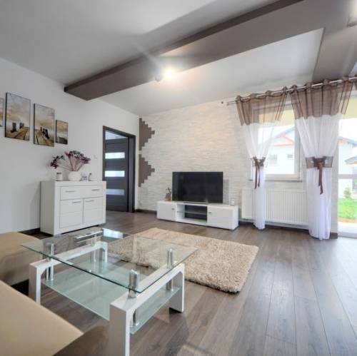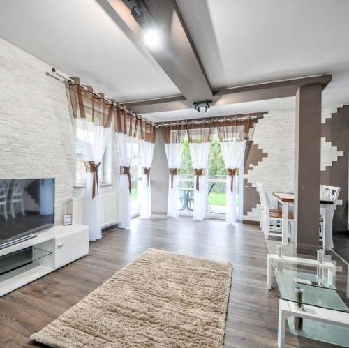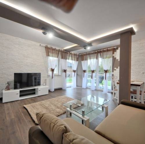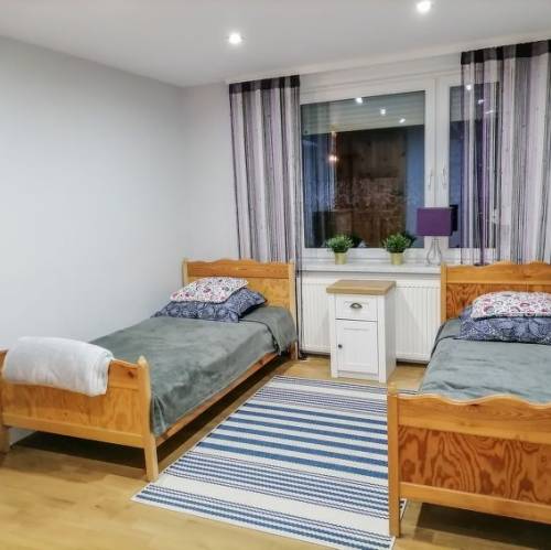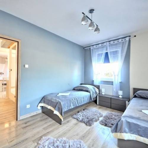 Nałęczów, PoloniaCasa de apartamentos "Apartamenty u Kraka", moderno, agradable, confortable de 2 plantas del año 2018. Lugar tranquilo, soleado en una pendiente. Comunitario: terreno 1'000 m2, parque, jardín grande, cuidado. Terraza, muebles de jardín, barbacoa, parque infantil, aparcamiento junto a la casa. Tienda 1.2 km, tienda de comestibles 1.2 km, supermercado 1.7 km, restaurante 800 m, parada de autobús 900 m, piscina cubierta 1 km. Campo de golf 2 km. A tener en cuenta: La foto corresponde a una de las viviendas. Se pueden reservar alojamientos adicionales. Apartamento de 3 estancias 65 hasta 70 m2. Con mobiliario confortable y moderno: salón-dormitorio con 1 sofá-cama y TV. 1 dorm. con 2 camas. 1 dorm. con 1 cama doble. Grande cocina abierta (horno, lavavajillas, microondas, cafetera eléctrica). Baño/ducha/WC. Calefacción de gas. Vista bonita al paisaje. El alojamiento dispone de: lavadora, plancha, secador de pelo. Internet (Wifi). 1 mascota / perro.