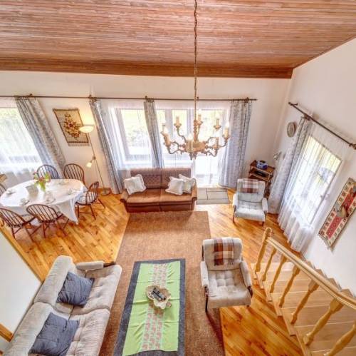 Kalinowo, PoloniaCasa unifamiliar "Jędrzejki", bonita, confortable del año 2015. Lugar tranquilo, soleado, elevado, a 300 m de un lago. Privado: terreno 700 m2, jardín. Terraza (50 m2), caseta de barbacoa (columpio). En el inmueble: trampolín. A disposición: bicicletas (4), bicicletas para niños (2), canoa, barco. Cambio de sábanas (suplemento extra). Posibilidad de ayuda doméstica (extra). Aparcamiento junto a la casa en el mismo terreno. Tienda 5 km, tienda de comestibles 5 km, supermercado 25 km, restaurante 12 km, parada de autobús 5 km, estación de tren 25 km, playa de arena 300 m, cala para bañarse 1 km. Lagos conocidos fácilmente accesibles: Rajgrodzkie, Stackie, Białe. A tener en cuenta: pesca permitida [con previa autorización]. Venta local de productos de granja. Casa 4 estancias 90 m2 en 2 plantas. Vivienda adecuada para 6 adultos + 2 niños. Salón-comedor abierto con 1 sofá-cama doble, chimenea y TV. Salida al jardín, a la terraza. Cocina abierta (4 fogones, horno, lavavajillas, congelador). Ducha/WC. Planta superior: 1 dorm. con 1 cama doble (160 cm, 220 cm de longitud). 1 dorm. con 1 cama de matrimonio (140 cm, 200 cm de longitud). 1 dorm. con 2 camas (80 cm, 200 cm de longitud), 1 posibilidad para dormir. Baño/WC. Terraza grande 50 m2. Muebles de terraza, barbacoa, tumbonas (4). El alojamiento dispone de: lavadora. Internet (Wifi, gratis). 1 mascota / perro.